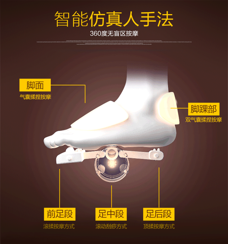 9、“捂脚”功能,全方位气囊按摩挤压。