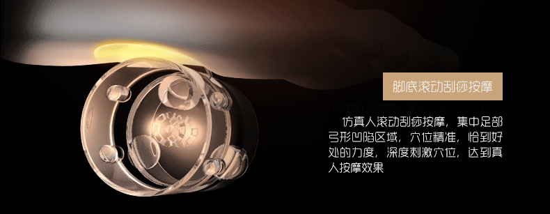 独立捂脚、刮痧功能,独家能按摩到脚踝的足疗机。